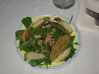 Arugula and Roasted Pear Salad with Parmesan Crisps