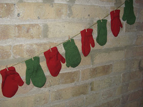 Toddler mittens from the dollar bin, a pretty ribbon and mini clothespins will help us count down the days until Christmas. Each mitten holds a treat for Jack and for his cousin Andrew when he visits us mid-month.