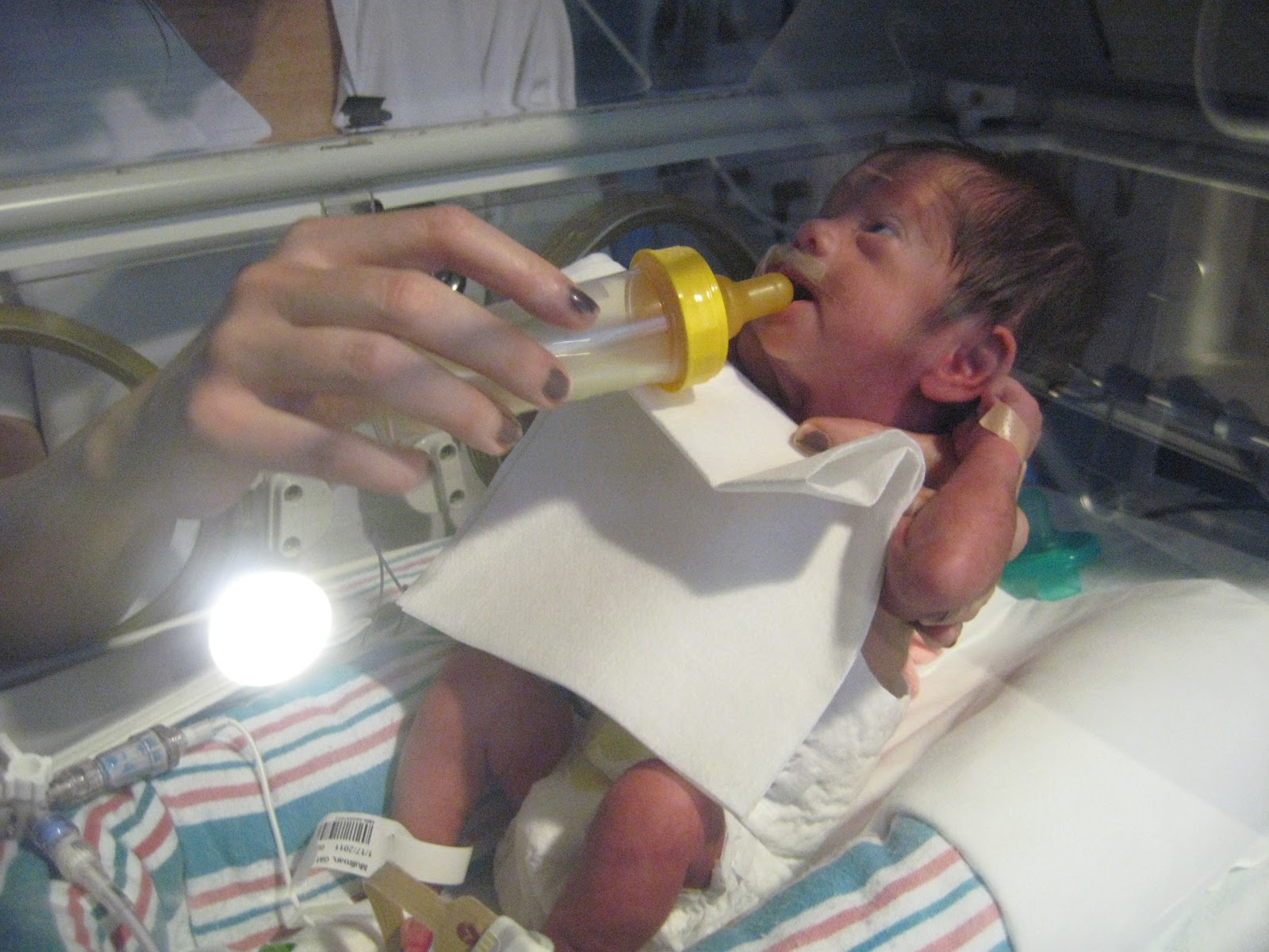great news. Jossie took two bottles through the night (she has currently been "eating" through a feeding tube that goes through her nose and down into her tummy). I'm already over the fact I wasn't there for this "first." I'm just so excited! She has been doing a great job sucking on her pacifier since day one but to take two bottles with no trouble is an