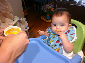 After the prerequisite gloppy rice cereal, we are moving along to more glamorous foods for Jossie to try. Last night, Jack and I made her some puree from peaches bought from the Green City Market. It was a mess but well worth it. Jossie loved her sweet treat!