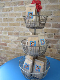 Everyone got a party favor bag of these treats to bring home; a great Etsy seller made me some fun custom stickers and I found the brown kraft bags at The Container Store.