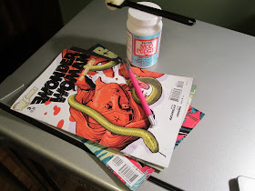 2. Cool paper to cover the letters; I used Wonder Woman comics, which was a journey in of itself. I headed to a comic store that was literally a block from my office. I never even knew it existed.
