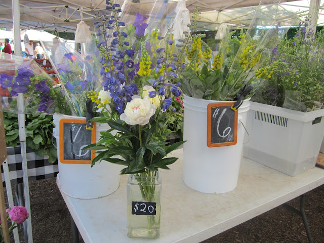 We came home with semolina bread, a handful of peonies, two quarts of strawberries and lettuce.