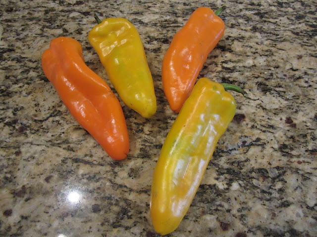 We went to one of the last outdoor markets of the season at the Green City Market. The sky was an overcast gray; the trees were beautiful autumnal hues. I did not take any pictures; I just tried to breathe in the nature of Lincoln Park, with Chicago as our backdrop. The Market was very quiet, and it was one of our best trips. We savored hot apple cider from Seedling; apple cider doughnuts from Zullo's; a ciabatta and a loaf of pumpkin sourdough bread from Bennison's Bakery; a fistful of herbs from Smits Farm; and end-of-the-season tomatoes. I also discovered Italian sweet peppers from a vendor, whom I'm regrettably forgetting the name. They look like large chile peppers but are not spicy and quite sweet. The farmer told me that they are sugar-sweet in the summer but have a mild flavor right now.