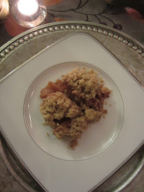 Our theme and main dish is set by the host; last night's theme was "harvest." It was perfectly appropriate for this early-November night - a lovely gathering of friends around a festive table, lit by candlelight.
