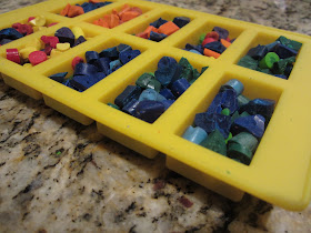 (Gratuitous Pinterest moment.) Then I threw in the Lego-shaped crayons idea. I have five years' worth of crayons from restaurants, and I bought a Lego mold